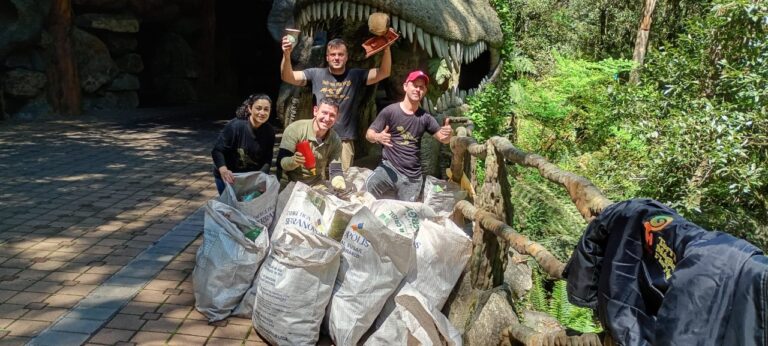 Mutirão com funcionários e prestadores do Parque Terra Mágica retira 19 sacos de lixo da água e margens Colaboradores e prestadores de serviço do Parque