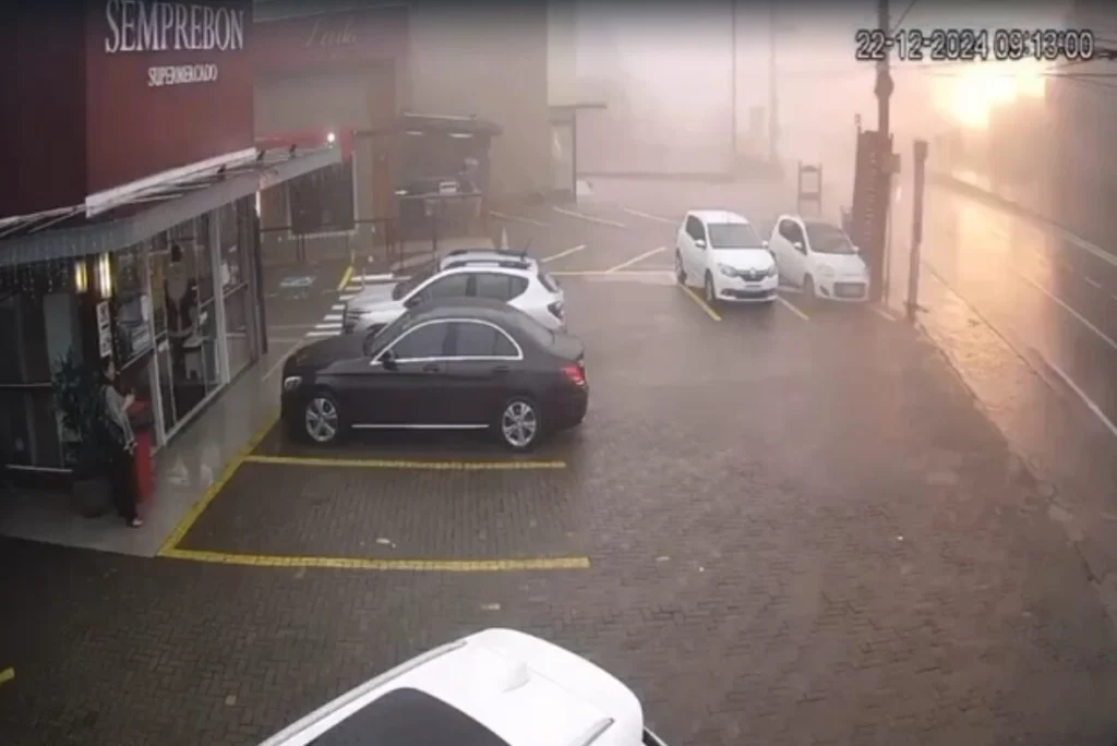 Um vídeo de câmeras de segurança mostra a explosão, no momento de impacto com o solo, às 9h13min.