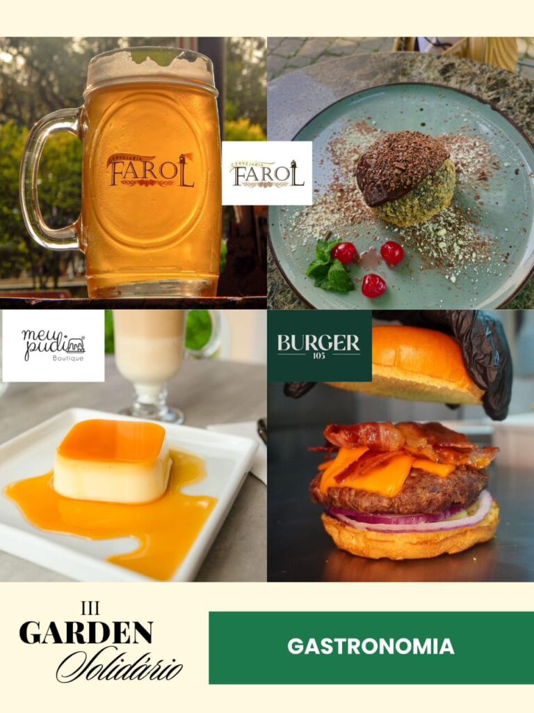 Além da música, o III Garden Solidário contará com gastronomia especial, reunindo delícias da Cervejaria Farol, sobremesas do Meu Pudim e os lanches do Burguer 105.