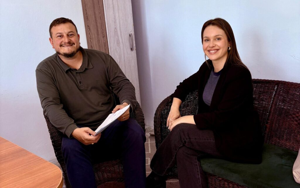 Vereadora Graziela Hoffmann e secretário Adriel Buss discutem novo projeto de lei voltado ao comércio local