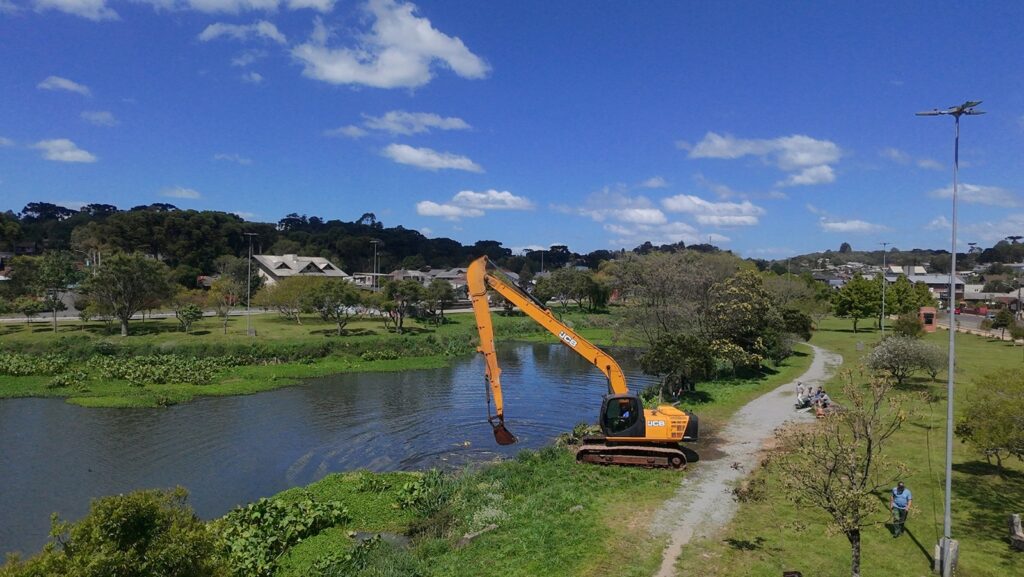 O serviço está sendo realizado com o auxílio de retroescavadeira de grande porte e tombadeira, equipamentos que fazem a remoção das plantas aquáticas e marrequinhas que tomaram parte da superfície do lago. O crescimento excessivo da vegetação é resultado da alta concentração de matéria orgânica na água, provocada principalmente pelo escoamento de esgoto doméstico para dentro do reservatório.