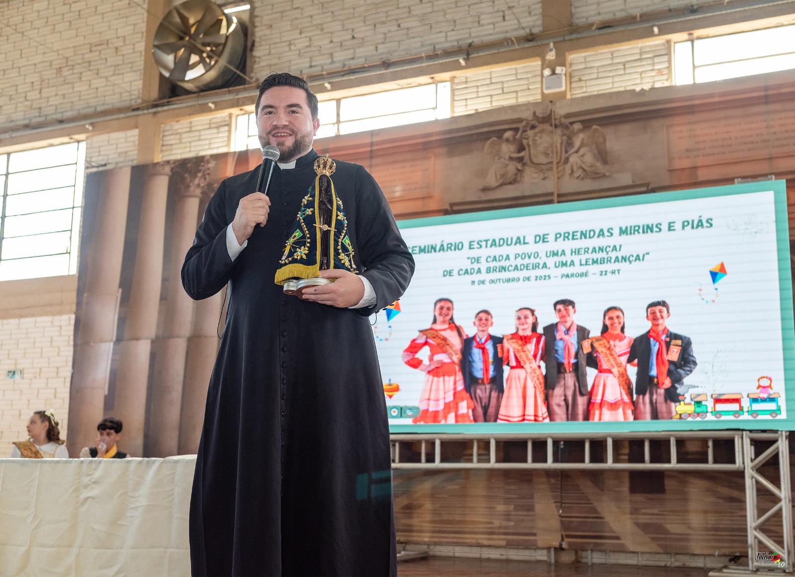 “Nós, mirins, representamos a ingenuidade da infância. Queremos mostrar que o tradicionalismo pode ser divertido e acolhedor. Não é competição. Nosso maior valor é fazer amizades, de ganharmos novos amigos.” Com essa fala cheia de ternura e significado, Isabeli de Lima, 1ª Prenda Mirim do Rio Grande do Sul, marcou a abertura do 4º Seminário Estadual de Prendas Mirins e Piás, realizado no dia 11 de outubro, no Barracão Católico de Parobé. Mais de mil tradicionalistas participaram do seminário, que reuniu delegações mirins de diversas regiões do Estado.