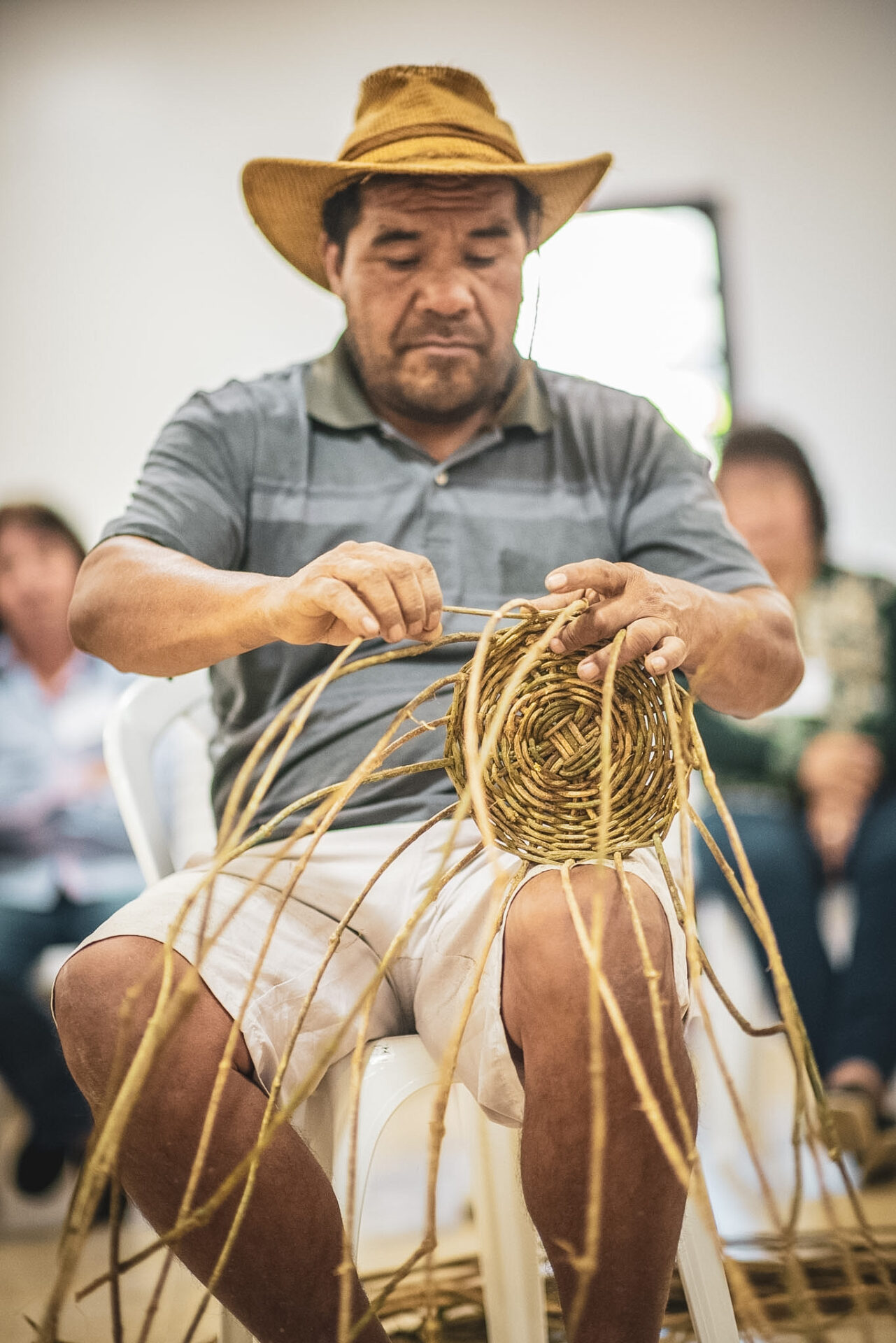 Durante a oficina, Valdecir, conhecido pelo nome kaingang Fatã, mostrou o processo de trançar o cipó São João, material que ele mesmo colheu no Bosque de Canella, uma Reserva Particular de Proteção Natural (RPPN) no bairro Ulisses de Abreu. O espaço, de mais de 10 hectares e sob responsabilidade de Cilon Estivalet, guarda vestígios da presença indígena, como casas subterrâneas e pontas de lança.