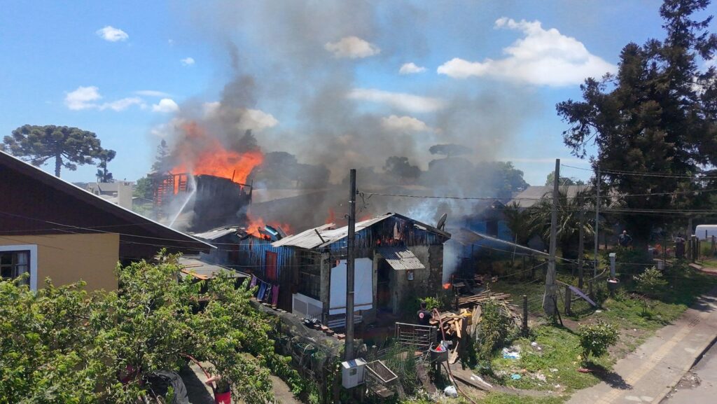 Populares relataram que um indivíduo teria chegado ao local com combustível e ateado fogo em uma das casas, dando início ao incêndio. Até o momento, não há registro de pessoas feridas.