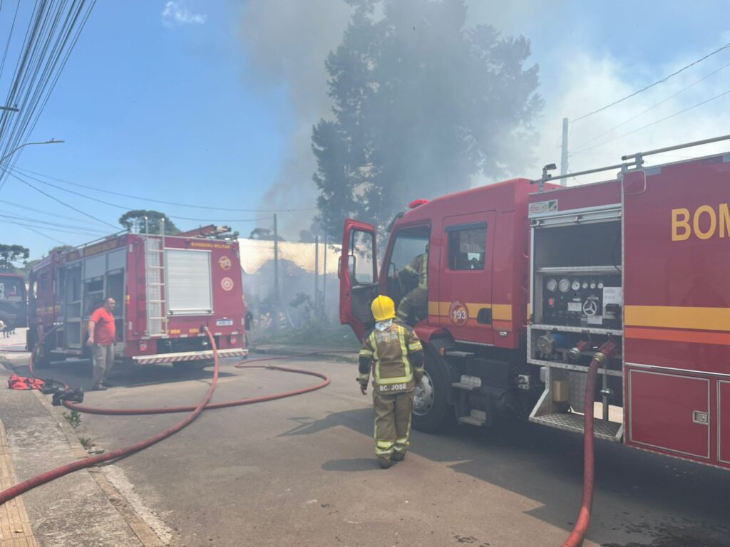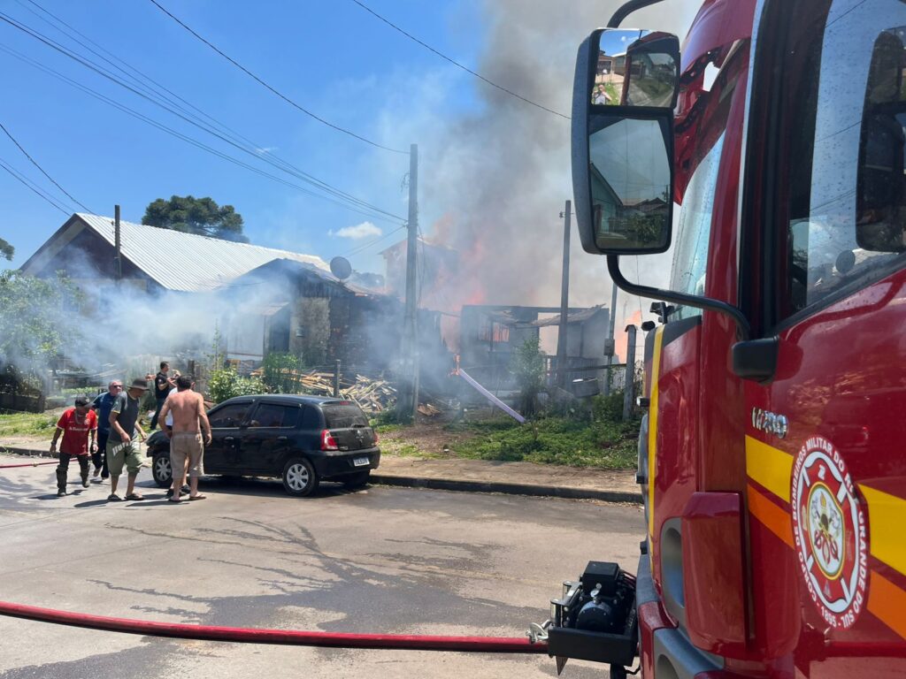 Um incêndio de grandes proporções atinge, no fim da manhã desta sexta-feira (21), um terreno com pelo menos quatro casas na Rua Egon Jung, no bairro São Rafael, em Canela. A ocorrência começou por volta das 11h e segue em andamento.
