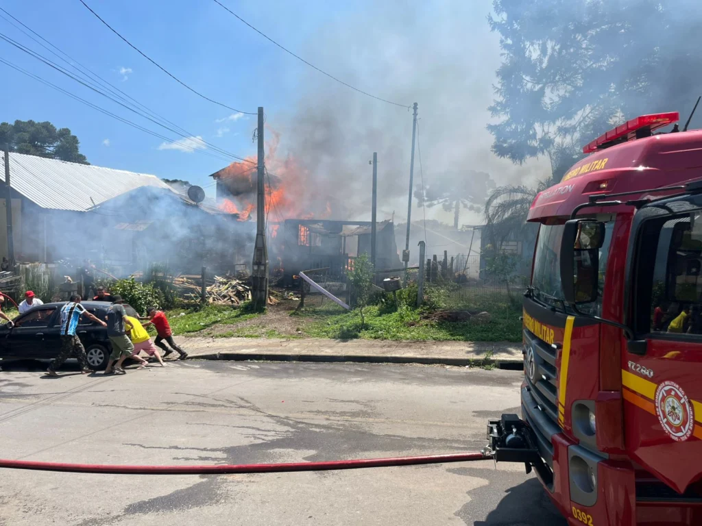 Populares relataram que um indivíduo teria chegado ao local com combustível e ateado fogo em uma das casas, dando início ao incêndio. Até o momento, não há registro de pessoas feridas.