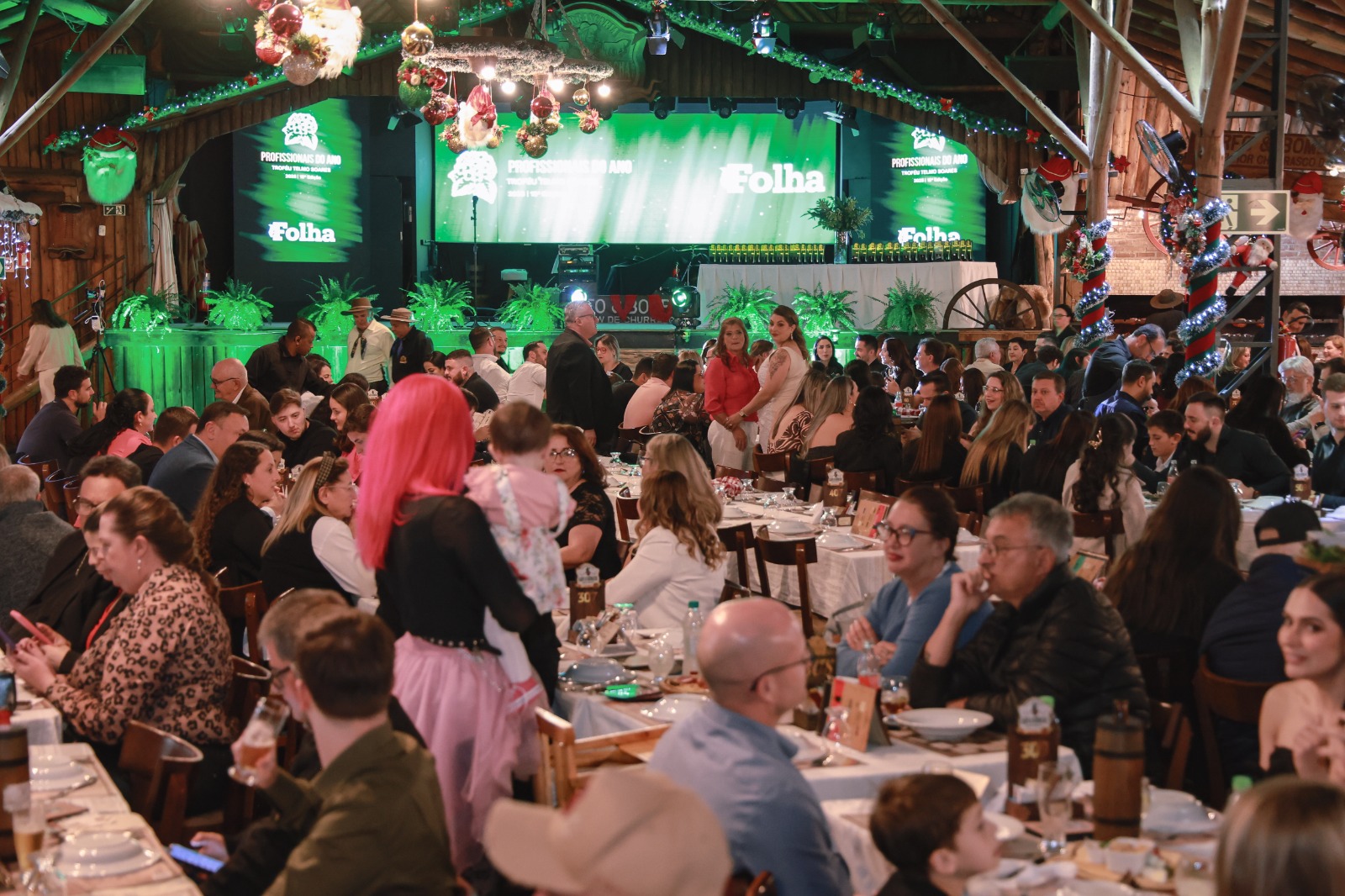 A Editora Folha de Canela Multimídia realizou, na última quarta-feira (19), a 10ª edição do Profissionais do Ano, evento que reconhece os trabalhadores que se destacam no atendimento, no serviço prestado e na relação direta com a comunidade canelense. A celebração ocorreu na Churrascaria Garfo & Bombacha e reuniu um grande público: mais de 300 pessoas acompanharam a cerimônia e mais de 70 profissionais receberam o troféu no palco. Outros cerca de 15, que não puderam comparecer, receberão a homenagem nos próximos dias.