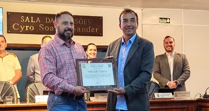 A Câmara de Vereadores de Canela entregou, na noite desta segunda-feira (01), uma Moção de Aplausos ao jornal Folha de Canela, em reconhecimento ao trabalho contínuo de divulgação e incentivo ao esporte local. A homenagem, proposta pelo vereador Roberto Grulke (MDB), foi recebida pelo diretor da editora, o jornalista Francisco Rocha. De acordo com o […]