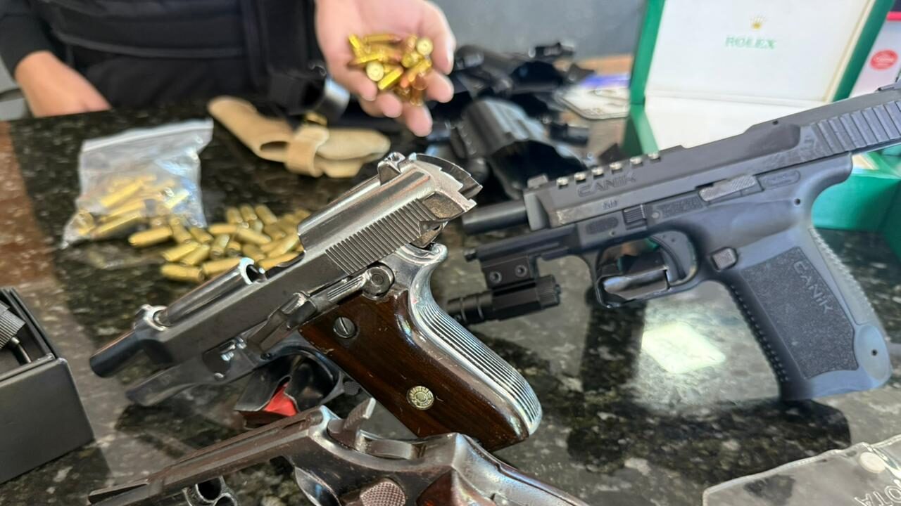 Durante as diligências, um dos investigados foi preso em flagrante, em Terra de Areia, por porte ilegal de arma de fogo de uso restrito. Imóveis ligados ao investigado — incluindo uma revenda e residências em Canela — também foram alvos de busca. O resultado foi a apreensão de um verdadeiro arsenal, composto por: