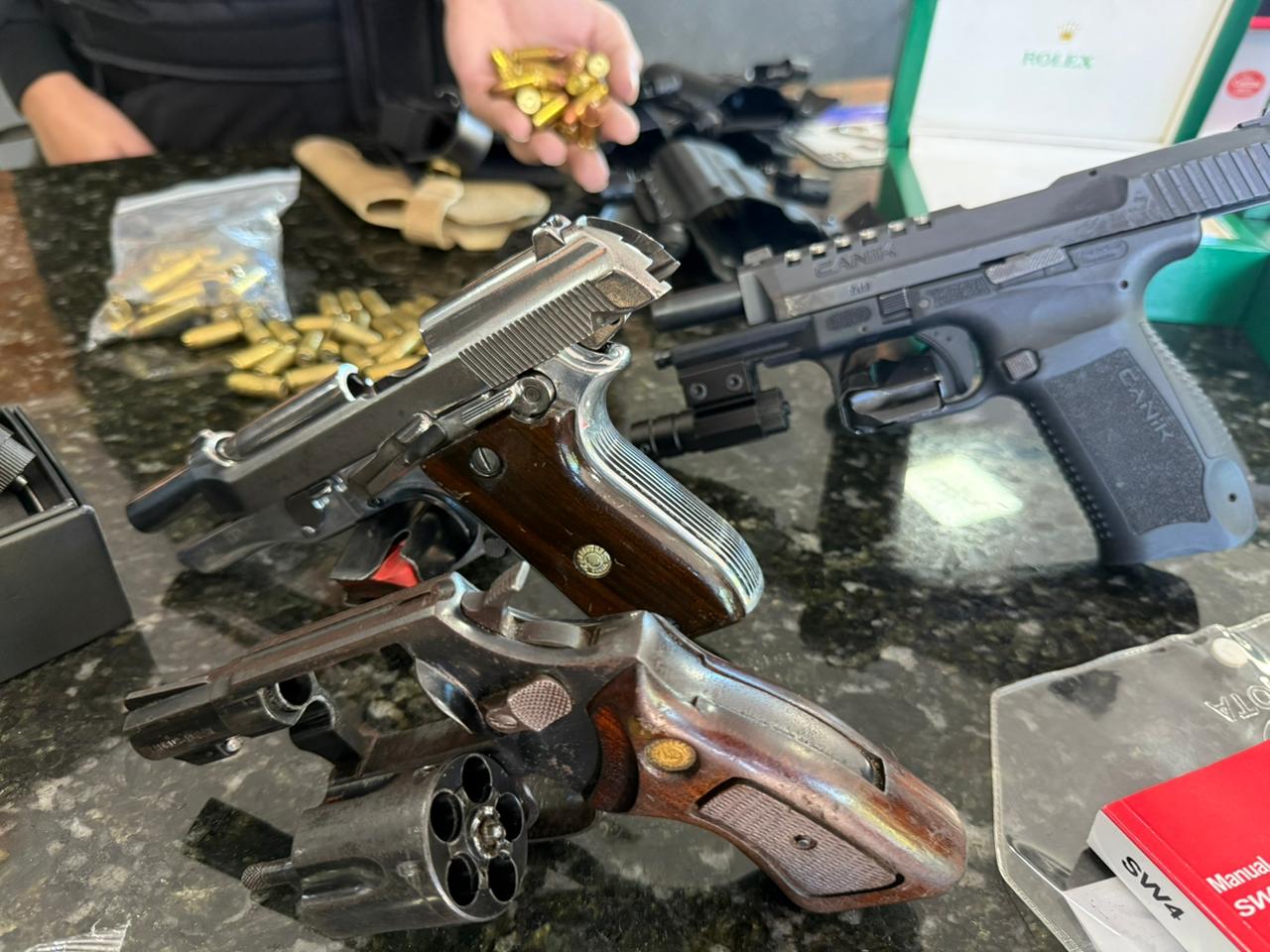 - 6 armas de fogo, entre pistolas, revólveres e armas longas;