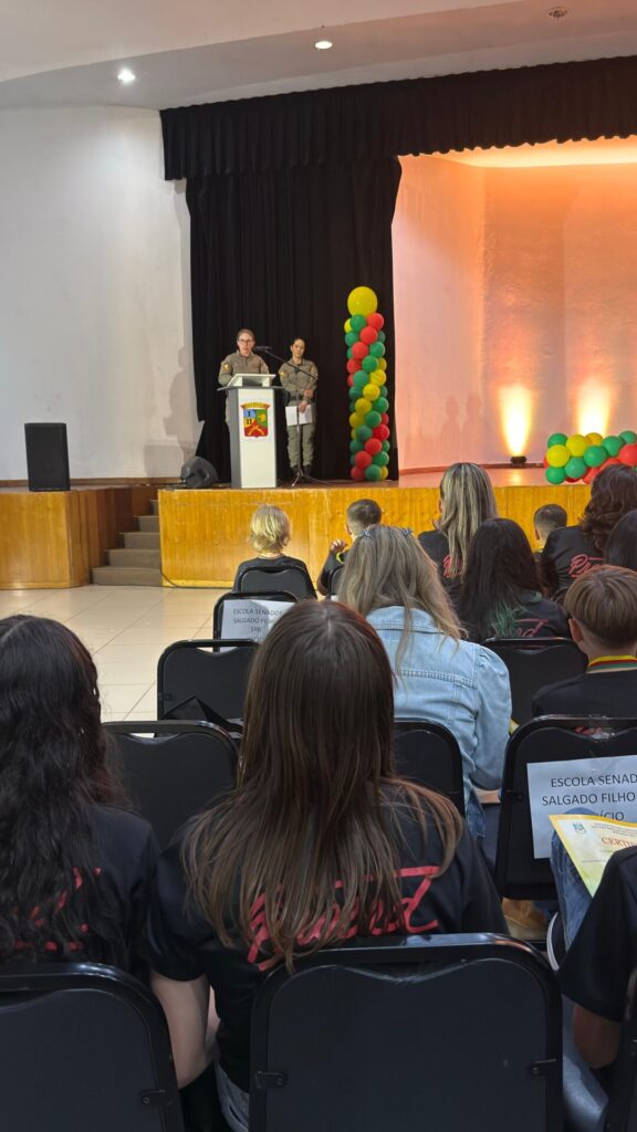 A Brigada Militar, por meio do 1º Batalhão de Policiamento em Áreas Turísticas (1º BPAT), realizou na noite desta quinta-feira a formatura de 315 alunos do Programa Educacional de Resistência às Drogas e à Violência (PROERD) em Gramado. A solenidade reuniu autoridades, famílias, professores e representantes de diversas instituições, celebrando a conclusão das atividades desenvolvidas ao longo do semestre.