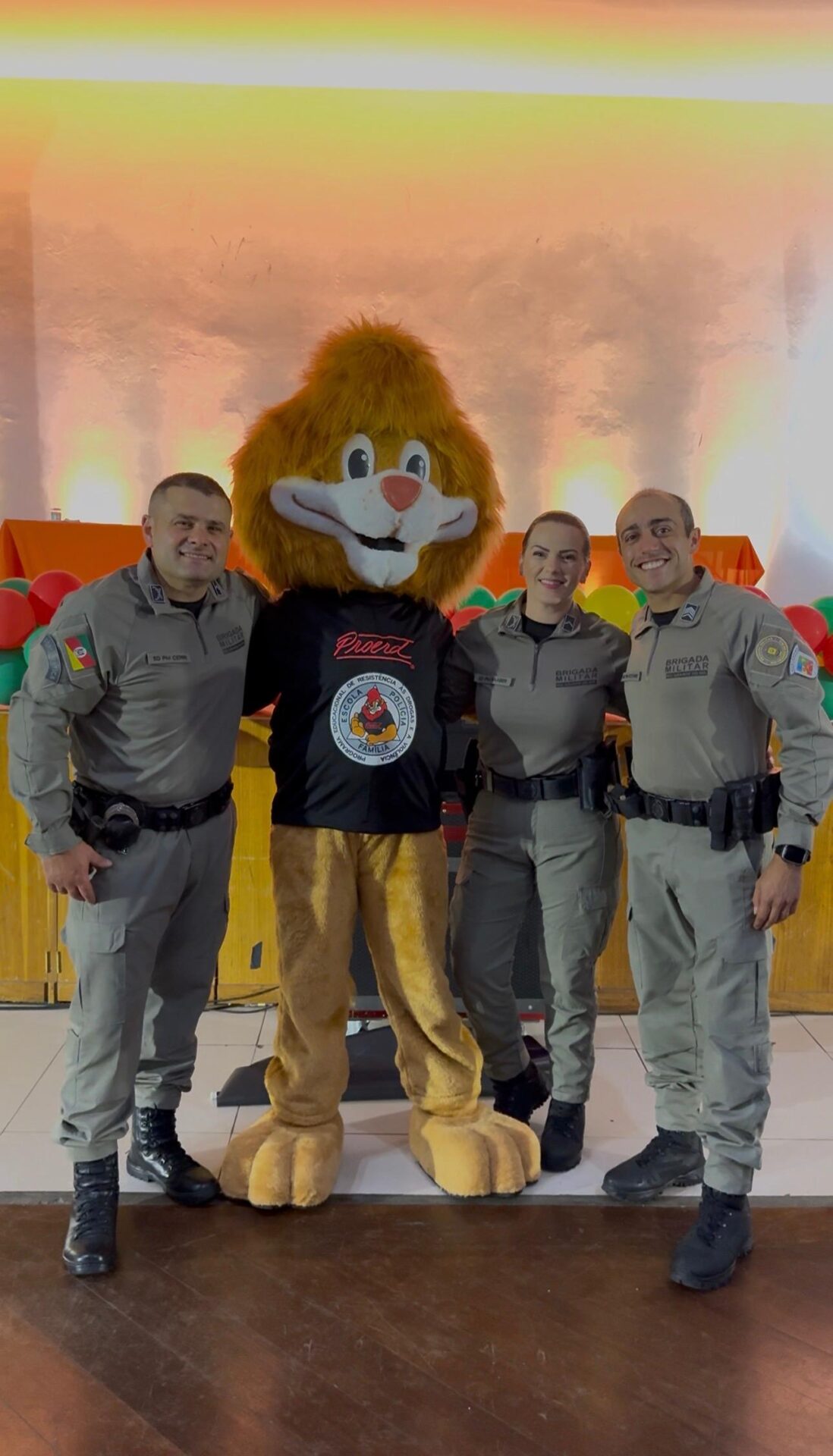 PROERD: um programa que transforma vidas. Criado nos Estados Unidos em 1983 e presente hoje em mais de 60 países, o PROERD tem por objetivo prevenir o uso de drogas e a violência entre crianças e adolescentes, fortalecendo habilidades sociais, autocontrole, tomada de decisões e construção de relações saudáveis. Em Gramado, os instrutores Sgt Rezende, Sd Raaber e Sd Cerri conduziram as aulas ao longo do semestre, levando para as salas de aula dinâmicas educativas que aproximam os alunos da Brigada Militar e estimulam o protagonismo juvenil.