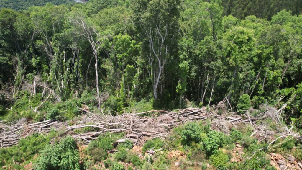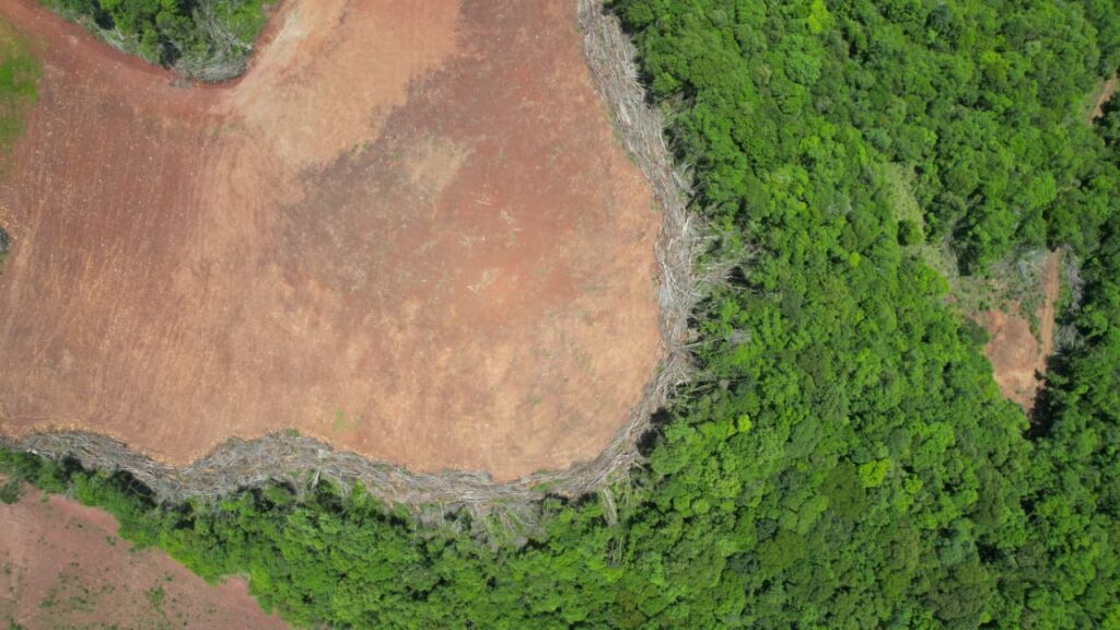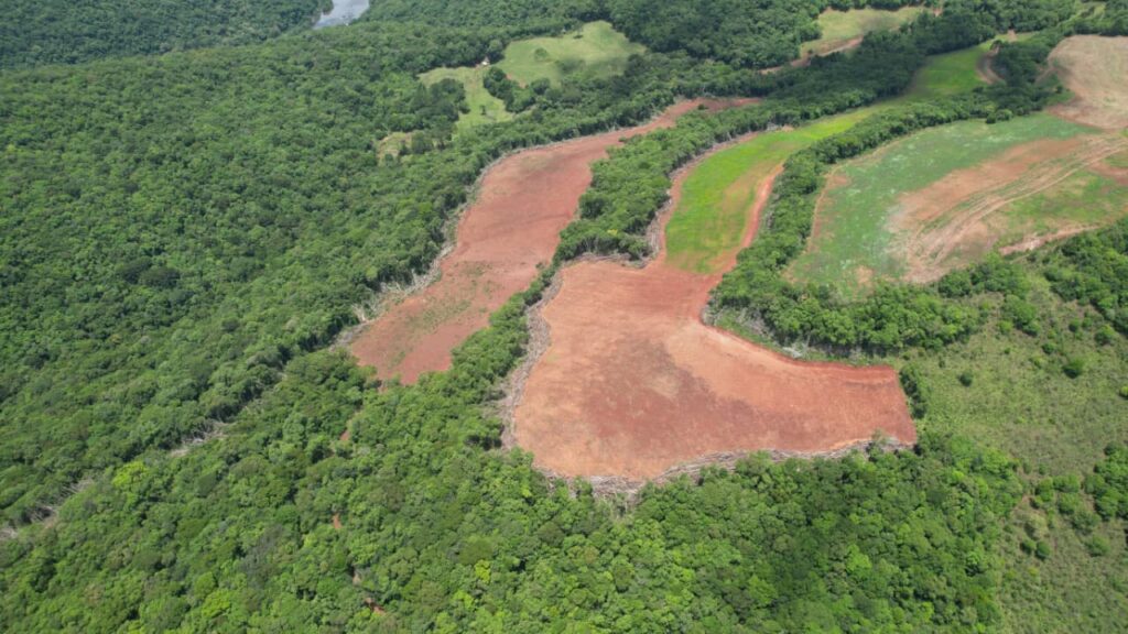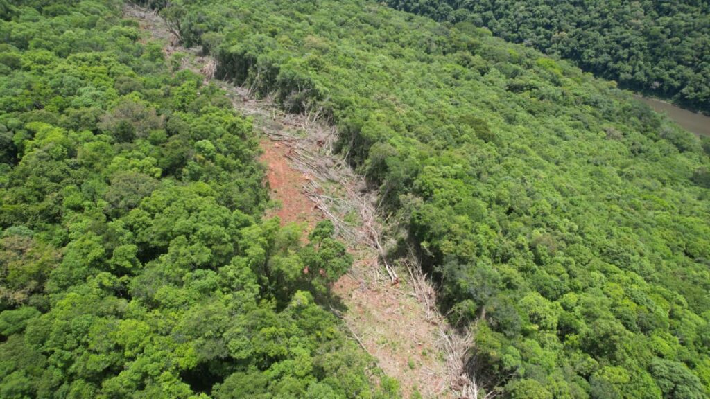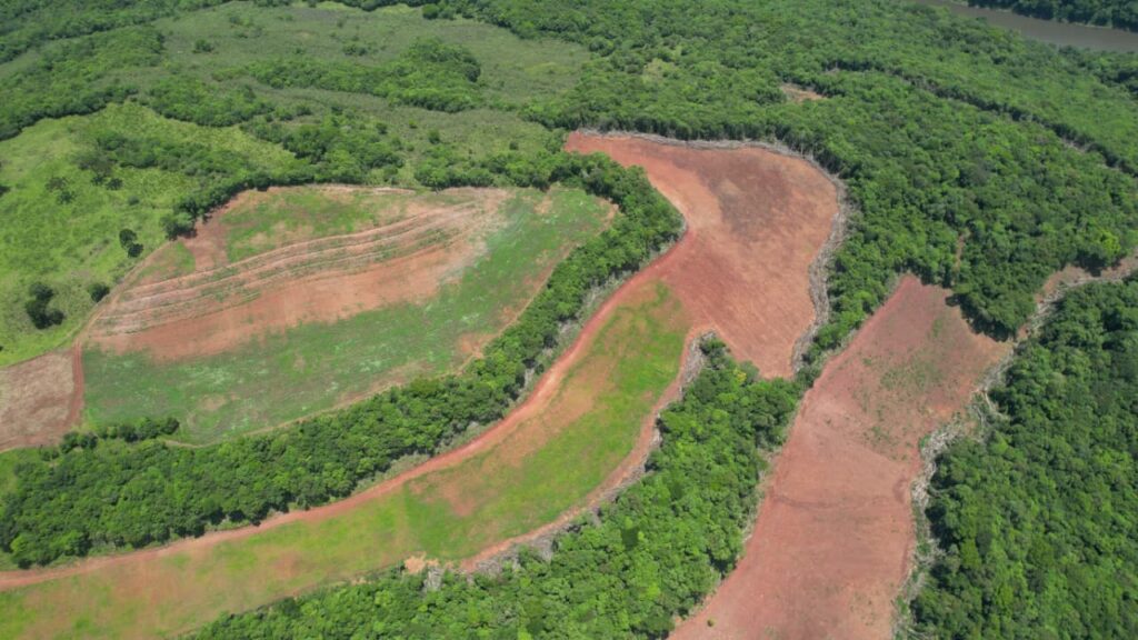 A equipe deslocou-se até a localidade de Colônia Felicidade – Pedra Lisa, no interior do município, onde foi verificada supressão irregular de vegetação nativa. No local, os policiais ambientais constataram corte raso da flora em uma área aproximada de 3,43 hectares, o equivalente a 34.300 metros quadrados.