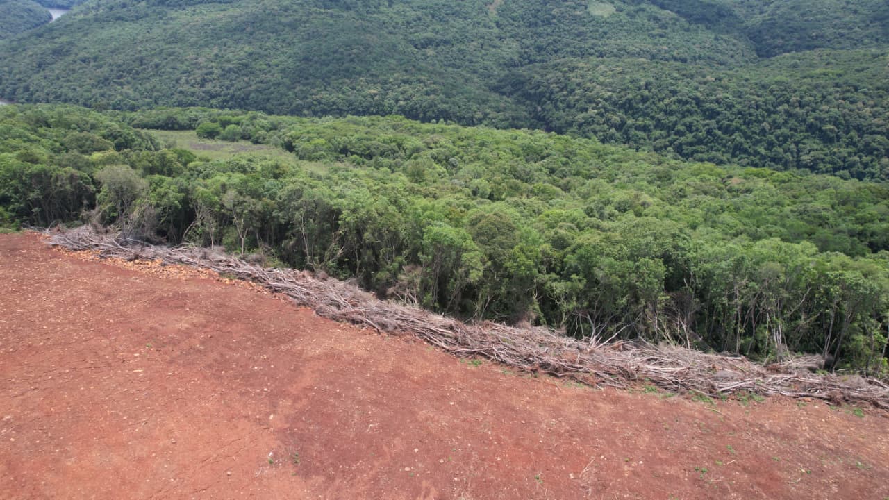 A equipe deslocou-se até a localidade de Colônia Felicidade – Pedra Lisa, no interior do município, onde foi verificada supressão irregular de vegetação nativa. No local, os policiais ambientais constataram corte raso da flora em uma área aproximada de 3,43 hectares, o equivalente a 34.300 metros quadrados.