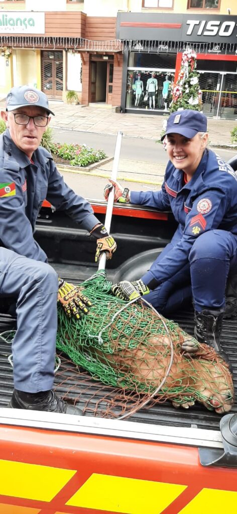 Diante da situação, foi acionado o Departamento de Meio Ambiente da Prefeitura de Canela, que prestou apoio à ocorrência. Com o auxílio de um puçá, os agentes conseguiram finalmente capturar o animal de forma segura.