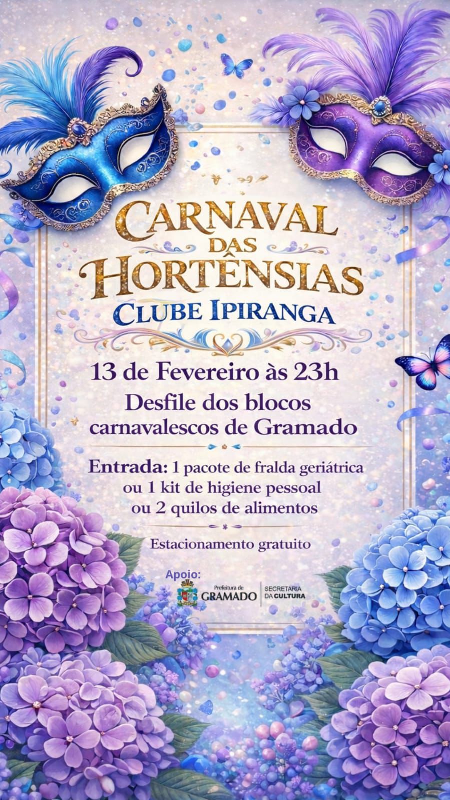 Carnaval das Hortênsias 2026, no Clube Ipiranga, reforça a tradição da festa como um espaço de encontro cultural, reunindo amigos, blocos carnavalescos e foliões em uma celebração que atravessa gerações, unindo música, dança e alegria. O evento é destinado a maiores de 18 anos.