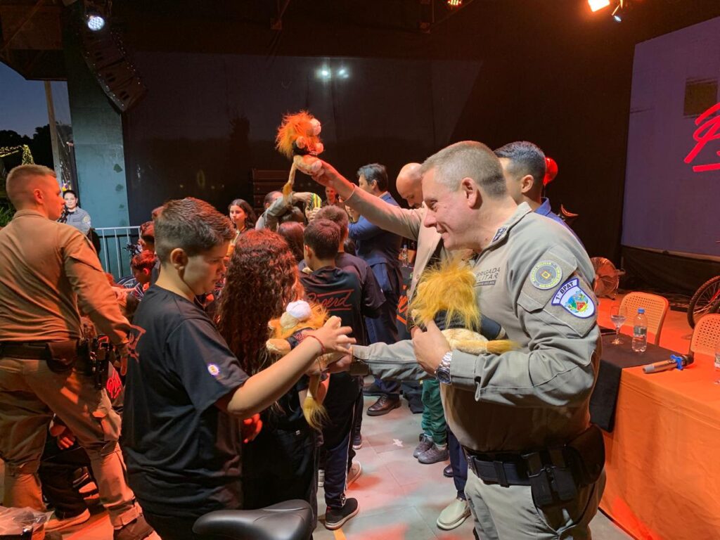 Durante a solenidade, os formandos realizaram o compromisso do PROERD, reafirmando publicamente a escolha por uma vida saudável e longe das drogas e da violência. Também houve a entrega de premiações para alunos que se destacaram em redações, apresentações simbólicas e a participação do mascote do programa, o Leão, reforçando o caráter educativo e lúdico da iniciativa.