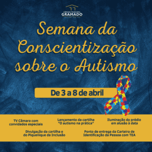 Programação ocorre em parceria com a Apae Gramado de 3 a 8 de abril A Câmara de Vereadores de Gramado realiza, em parceria com a Apae Gramado, na primeira semana de abril, do dia 3 ao 8, ações