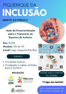 No próximo sábado (01), a APAE Gramado e TEAcolhe Serra, com apoio da Prefeitura de Gramado, realizam o Piquenique da Inclusão no Lago Joaquina Rita