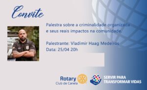 Evento terá transmissão pelo YouTube e acontece nesta segunda-feira (25) O Rotary Club de Canela realiza um evento com a participação do delegado de Polícia