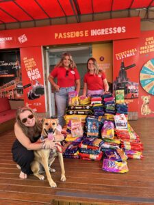 O mascote Caramelo, da Bustour, participou da entrega de doações para voluntários de três ONGs de Canela e Gramado: Associação Mãos Dadas Patas Salvas, ONG