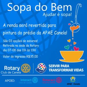 Ajudar é Sopa! Basta participar da campanha Sopa do Bem, que terá a renda revertida para a pintura do prédio da Apae Canela. RECEBA GRATUITAMENTE