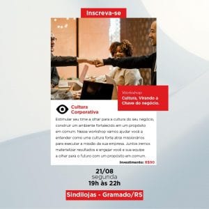 Idealizado pela Iniciativa Eyes e Sindilojas Hortênsias, o workshop “Cultura: Virando a chave do negócio“, acontecerá no dia 21 de agosto, das 19h às 22h,