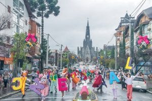 A decoração interativa de Páscoa faz a diversão dos visitantes que vieram a Canela conferir as atrações. Durante o dia, as famílias aproveitam para andar