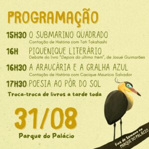 No próximo sábado, dia 31 de agosto, acontece a segunda edição do ciclo “Fins de Semana no Parque do Palácio”, iniciativa planejada para acontecer uma