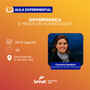 Na próxima quarta-feira (06), o Senac Gramado terá aula experimental do curso de Governança em Meios de Hospedagem com a docente Franciele Bandeira. Será uma