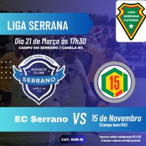Equipe de Canela faz seu primeiro jogo contra o 15 de Novembro O Esporte Clube Serrano dará início à sua participação na Liga Serrana de