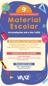A Vivaz Comunicação está promovendo a 9ª edição de sua campanha de arrecadação de material escolar, com o objetivo de beneficiar alunos de escolas municipais