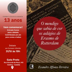 O Clube do Livro de Canela comemora 13 anos de atividade com um encontro especial nesta quinta-feira, 31 de outubro, às 19h, no Gato Preto.