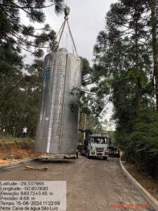 A Corsan Aegea realizou na manhã de sábado (15/06) o içamento de um reservatório de cem mil litros de água no Loteamento Edgar Haack, localizado
