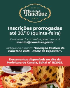 Interessados em participar do Festival do Panetone de Canela, que acontece durante o 38º Sonho de Natal, ganharam mais um tempo para realizarem o credenciamento.