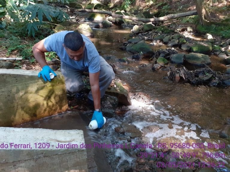 A Secretaria Municipal de Meio Ambiente de Canela recolheu amostras da água que é despejada pela Estação de Tratamento de Esgoto – ETE Santa Terezinha,