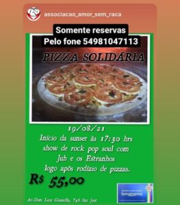 O Restaurante Serramanna realiza um rodízio de pizza solidário, nesta quinta (19), com início às 17h30min com show de Juh e Estranhos. A ideia é