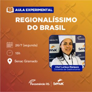 Na próxima segunda-feira (26), às 15h, o Senac Gramado apresenta uma aula experimental gratuita, aberta ao público, onde será ensinado diversas receitas regionais brasileiras. Prepare-se