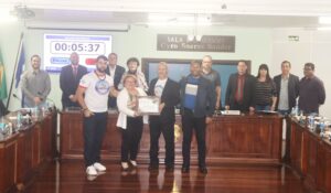 Durante a Sessão Ordinária de quarta-feira, 16, a Presidente da Câmara de Vereadores de Canela, Emilia Fulcher, realizou a entrega de uma Moção de Aplausos