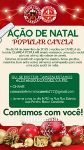 O núcleo da torcida Guarda Popular Canela promove, no próximo sábado (14), uma ação social de Natal voltada às crianças do município. A mobilização acontece