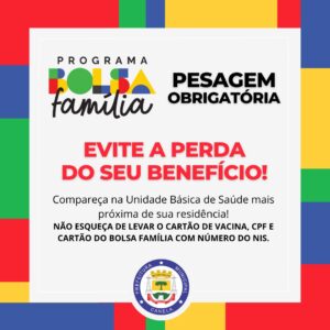 No próximo sábado, dia 18 de maio de 2024, os beneficiários do Programa Bolsa Família terão a oportunidade de realizar a pesagem obrigatória na Unidade