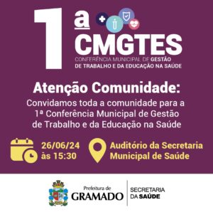 Evento, que é aberto à comunidade em geral, ocorre na próxima quarta-feira (26), no Centro Municipal de Saúde! A Administração Municipal de Gramado, por meio