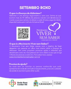 De 24 a 30 de setembro a Prefeitura de Gramado, através da Secretaria da Saúde e com apoio do Movimento Viver Sem Saber, realiza a