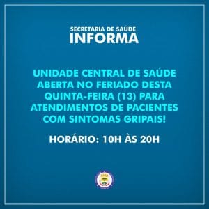 A Secretaria de Saúde de Canela informa que a Unidade Central de Saúde, localizada na Rua Sete de Setembro, nº 340, Centro (quadra abaixo do
