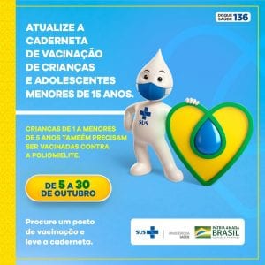 Na segunda-feira (5), iniciam-se em todo o país a campanha de vacinação contra a poliomielite e de multivacinação para atualização da caderneta de vacinação de