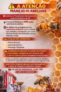 O Corpo de Bombeiros Militar do Rio Grande do Sul informa que, conforme seu Procedimento Operacional Padrão (POP), não realiza o extermínio de abelhas, em