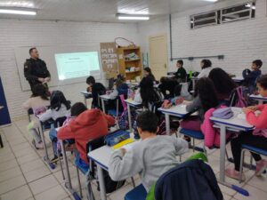 A primeira participante foi a Escola Municipal de Educação Infantil e Fundamental Ernesto Dornelles, no bairro Vila Boeira, em Canela Nesta quarta-feira (21), um Policial