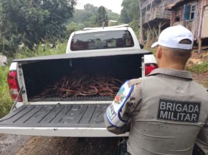 No momento da abordagem, os criminosos estavam queimando o material furtado Na tarde de sábado (29), por volta das 14 horas, a Brigada Militar de