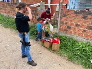 Alimentos, materiais escolares e brinquedos foram entregues as crianças A Polícia Civil se Canela realizou, na tarde desta quarta-feira (22), ação social em diversos bairros
