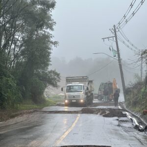 Intervenções no KM 36, sentido Canela/Gramado, nas proximidades do Parque Knorr, ocorrerão das 8h30 às 23h! A obra para recuperação da encosta na RS-235 (KM 36, sentido